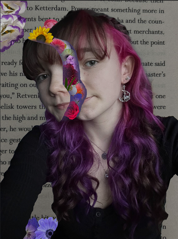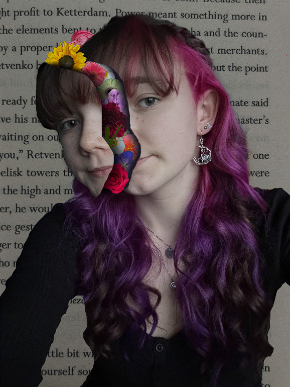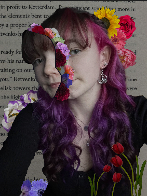 With this portrait I tested out different flower variations for the background, from completely empty and simple to overrun with a variety of flowers. In the end I preferred a look that is somewhat in the middle and doesn’t take away from my final portrait.