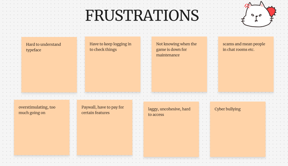 I plan to combat frustrations such as a hard to understand typeface through making my app accessible to everyone. Furthermore, I will try to avoid an overstimulating experience through using simplicity.