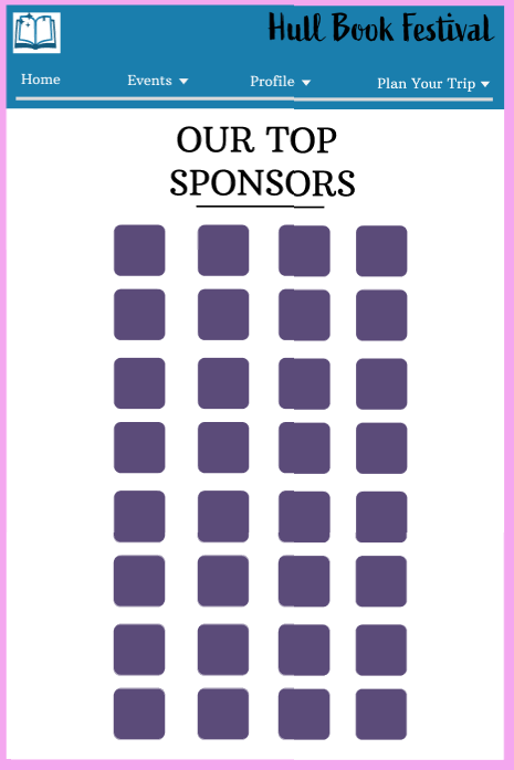The top sponsors page was created to thank the sponsors and stakeholders which would help fund the festival and the stakeholders such as the food vendors that will be present on the festival. Each purple image will have a logo from each specific stakeholder in order to pay gratitude.