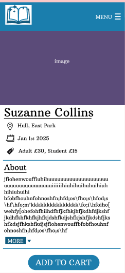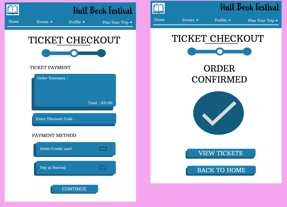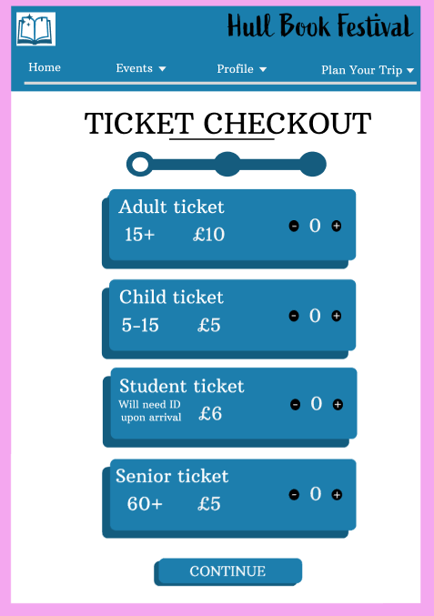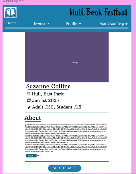 This design is also focused upon being accessible for all users. It is straightforward for those who are not tech savvy and it follows a familiar design to other book festivals so will be easier for users who aren’t tech savvy as it is a conventional, easy to navigate website. Furthermore, the app has a limited amount of motor movements for those who struggle with pinching, tapping and swiping. The uncomplicated design requires a very quick ticket checkout process therefore it is very simple to use the app. Regarding the website, it is accessible as it has large writing throughout each page which is clearly accessible for those with vision impairments. This large font is also used throughout my app as well as the font always being clear contrast to the background, making it accessible for those who are colourblind.