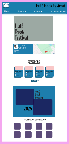 The homepage for both my app and website resemble each other clearly. Both have key aspects such as images to engage the user and the name of the festival in the logo font. Furthermore, the homepage displays easy access to the events page whilst also displaying the top sponsors.