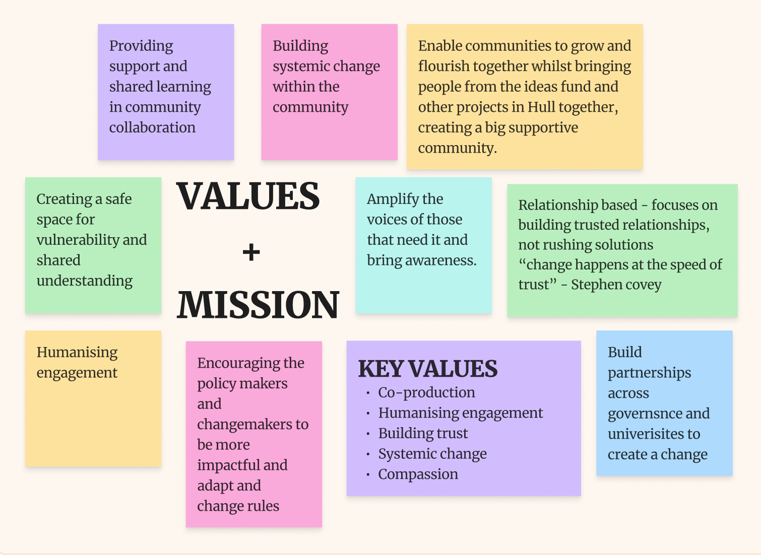 The ideas fund is a funder (and core stakeholder) that supports many community-led projects around the UK and it has a few criteria which must be met for funding (which include : led by the community, based in one of the specific 4 local areas, focused on mental well-being and working with a researcher to share knowledge fairly). This is important as the participatory collective will embody all of these values and criteria.