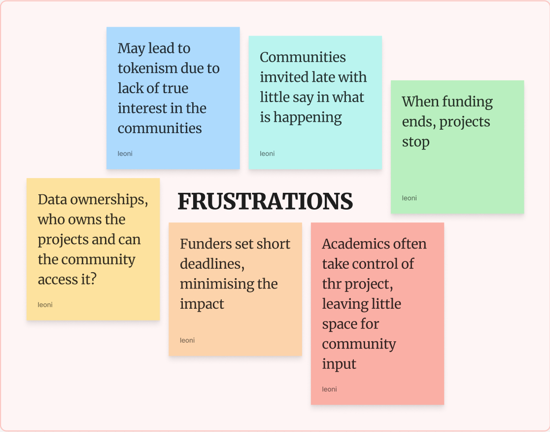 However, there are many frustrations from communities and charities such as the researchers often taking the lead of projects and allowing little input from charities. This is frustrating as they cannot execute their project how they want which means it may not have as much of an effect. Furthermore, often projects are stopped due to lack of funding and the participatory collective will raise awareness of this, getting charities the support they need to permanently alter communities for the better.