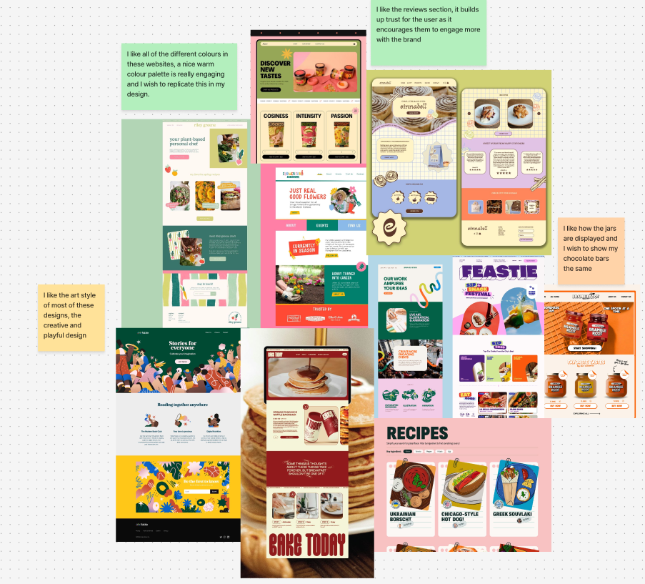 Furthermore, after researching inspiration for my website layout and style, I decided to go with a fun, playful website that is engaging and aesthetically pleasing. I will utilise many elements I saw in the mind map such as a review section and displaying the product on the page.