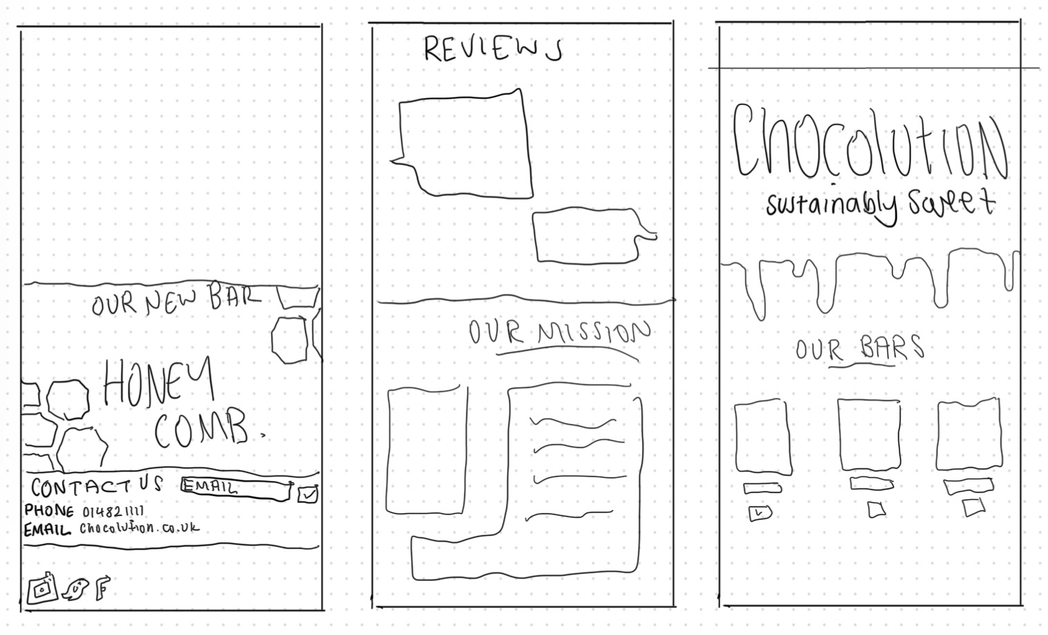 Originally, I wanted to utilise illustrations throughout my website design. The idea of using drawings to engage an audience would have worked particularly well for a family audience, allowing my brand to be accessible to a wider audience. However, I instead decided to use a chocolate dripping effect on my mobile layout as this fits better with my brand identity as an eco-friendly chocolate brand. Furthermore, I decided that utilising illustrations may have made my brand too busy and overwhelming which would have ended up in less users.