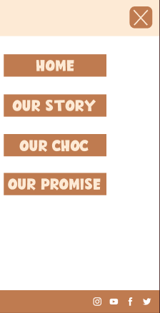 I also designed an extra page which is my menu page. I decided the menu page was necessary to further show the components of my website. I have kept a simple colour scheme with both elements and focused on making the call-to-action buttons clear and engaging. This menu represents all the places that would have been available to see on my website, these components such as ‘Our Promise’ and ‘Our Choc’ is important in brand design and follow the conventionalities of sustainable chocolate brands linking to brands such as ‘Tony’s Chocoloney’.